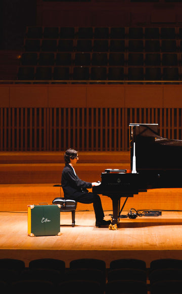 He opens the case and begins to play. The melody of the Turkish March fills the air. 'This is the first time I've played it while it’s still encased,’ he laughs. ‘I had the height adjusted, and with no metal fittings on the sides, my hands have plenty of room. Now I just have to get used to it.’ The interior foam designed to hold the piano in place fits perfectly, preventing any movement during transit.