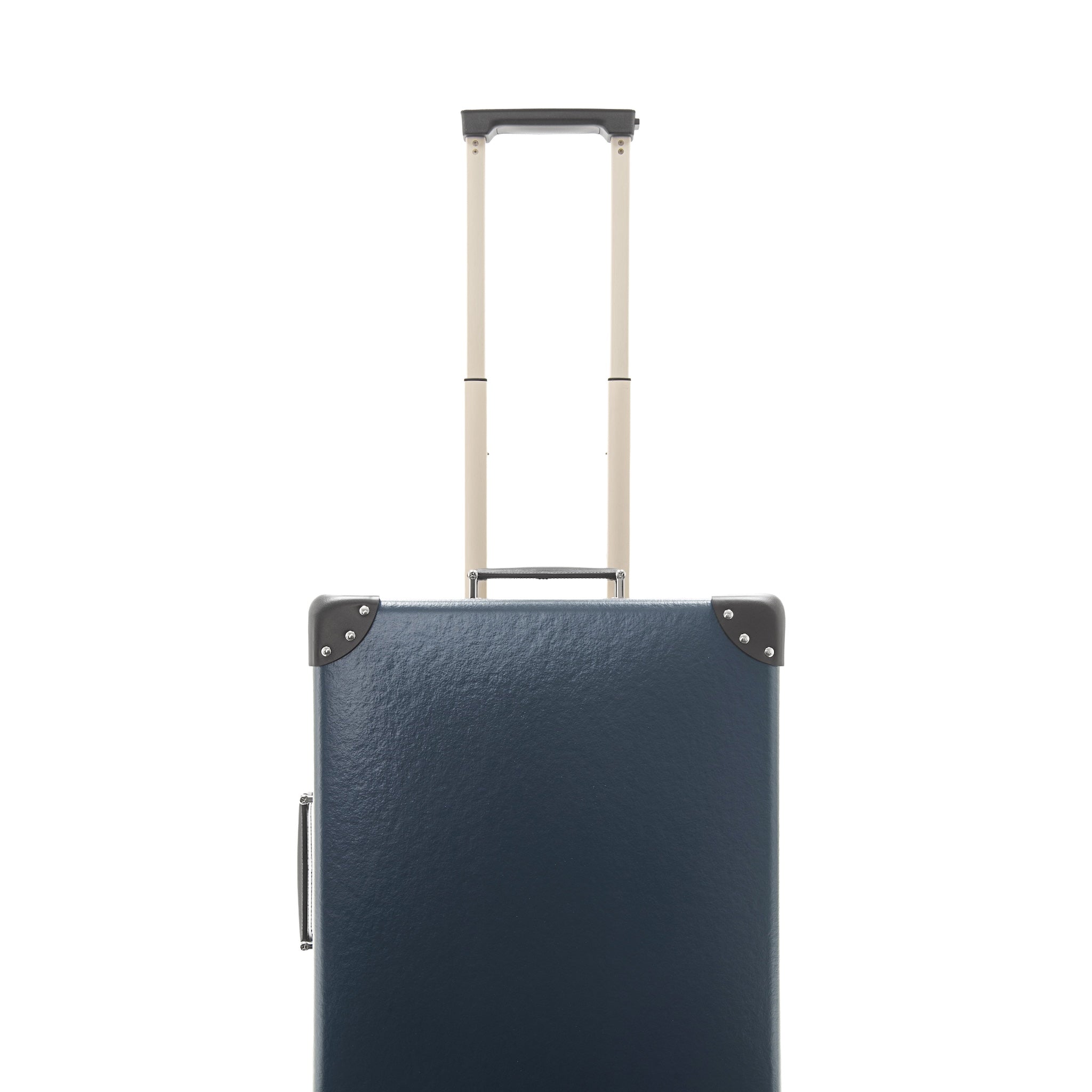 At its core, the Metropolis Carry-On in Admiral Navy and Black captures this spirit of modern exploration. Globe-Trotter’s signature vulcanised fibreboard is encased within a precision-engineered aluminium frame, creating a suitcase that is both lighter and stronger while maintaining the distinctive silhouette that defines the brand. Every contour, rivet and stitch has been refined, from the sculpted corners to the handcrafted leather accents.